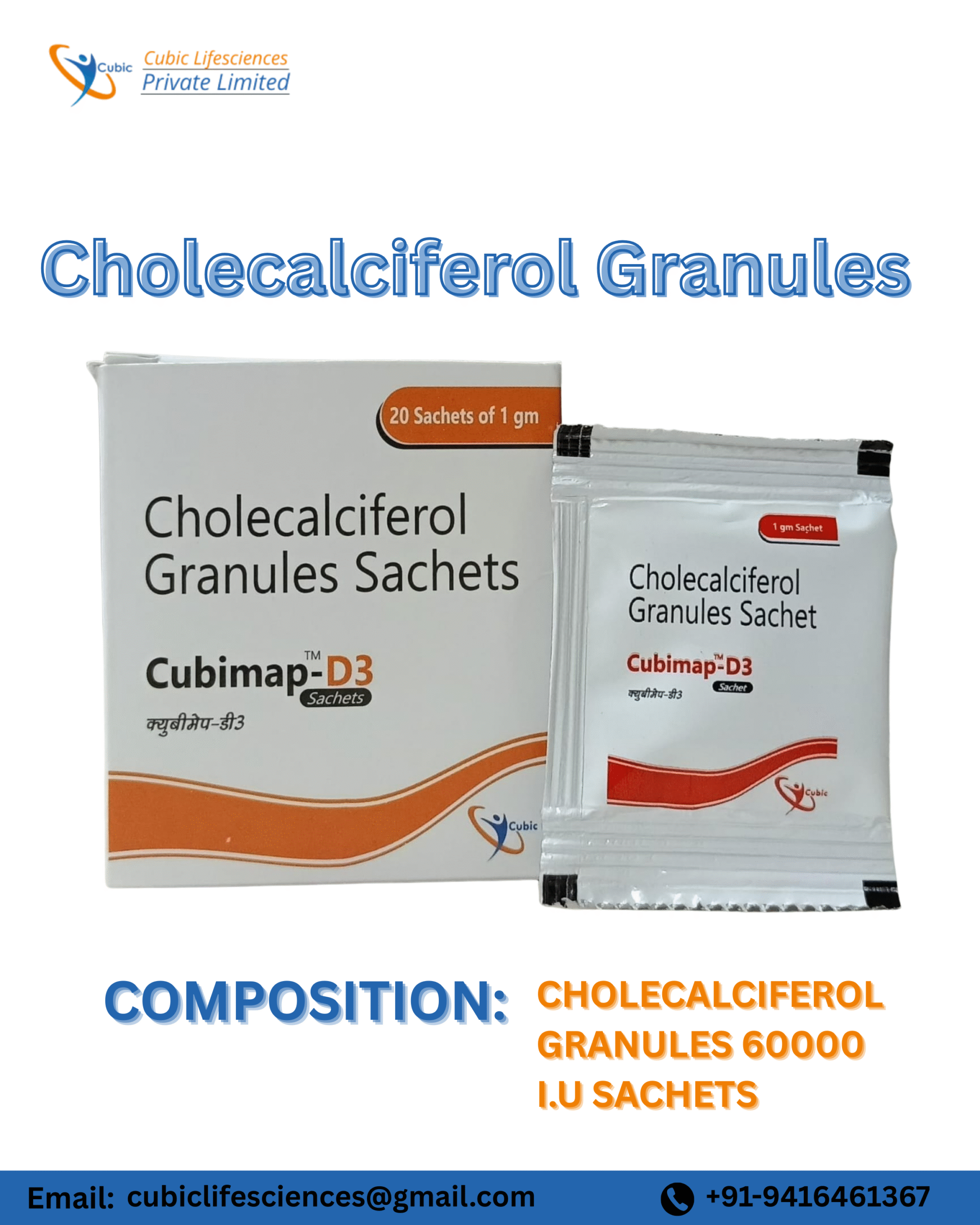 Maintaining optimal health requires a delicate balance of essential vitamins. Cholecalciferol, commonly known as Vitamin D3, is one of the most vital nutrients for the human body. CUBIMAP-D3, offered by Cubic Lifesciences, provides a potent therapeutic dose of 60,000 I.U. of Cholecalciferol in easy-to-use granule form.